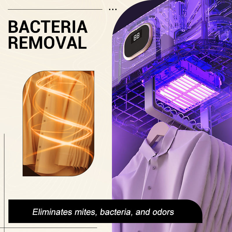 DESINFEKTIONSKRAFT â Enheten hjĂ€lper inte bara till att torka, utan bidrar ocksĂ„ till att upprĂ€tthĂ„lla renligheten. Den varma luften eliminerar bakterier och dammkvalster, medan den inbyggda negativa jontekniken neutraliserar lukter. Detta sĂ€kerstĂ€ller att dina klĂ€der inte bara blir torra utan ocksĂ„ hygieniskt sĂ€kra och doftar rent.